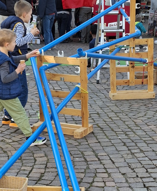 - Aus ökologischen Gründen wird Wert auf die Wiederverwendung von Spielen gelegt. Was es eventuell schon gibt, brauchen wir weder selbst basteln, noch kaufen. Die Gemeindemitglieder wurden daher in der Anfangszeit aufgefordert mal den Keller oder Dachboden zu durchforsten, ob hier ein brauchbares Spiel verstaubt. Gesucht wurden vor allem transportable große Spiele für Draußen. Dadurch ist das Inventar des Spielmobils sehr schnell angewachsen.